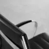 Erleben Sie Eleganz und hochwertigen Stil. Dieser Bürostuhl ist das Ergebnis von Stuhlherstellern, die beschlossen haben, einen Stuhl zu entwickeln, der zuverlässig funktioniert. Funktional gesehen ist es ein Vergnügen, in ihm zu sitzen, da die strapazierfähige, gerippte Vinyl-Rückenlehne die natürliche Haltung unterstützt. Das Sitzkissen und die Armlehnen sind gepolstert, und die Form der Armlehnen wurde so konzipiert, dass die Arme beim Tippen im 90-Grad-Winkel abgewinkelt werden können. Das verchromte Aluminium-Fußkreuz dieses Bürostuhls ist mit fünf Doppelrollen ausgestattet, während ein Spannknopf und eine Neigungssperre eine einfache Einstellung der Rückenposition ermöglichen. Ein verstellbarer Drehstuhl für das moderne Büro, der den Geist des Fortschritts und der Entschlossenheit verkörpert.
